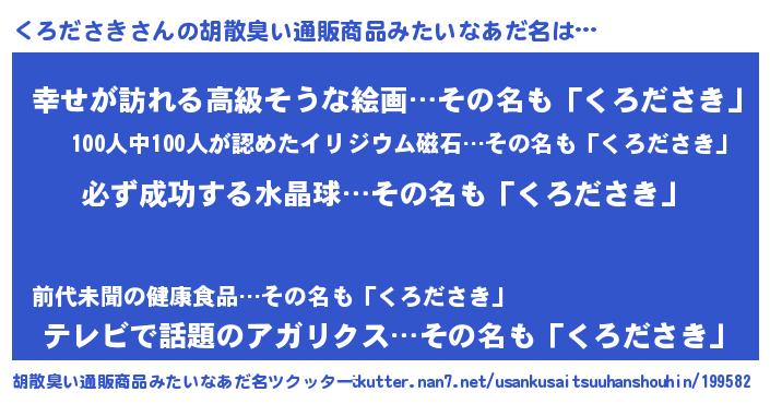| 意味不明あだ名 | 『ペロリンくろださき』『自称くろださき』 |