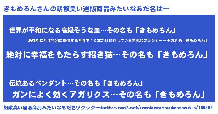 | 意味不明あだ名 | 『永久保存きもめろん』『自称きもめろん』 |