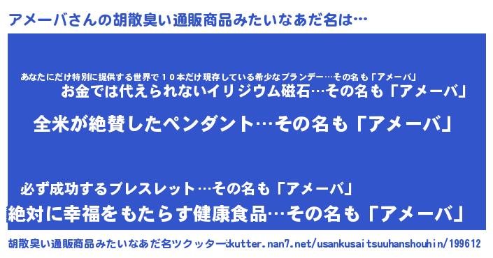 | 男性向けラノベタイトル風あだ名 | 『アメーバの嫁は女の子じゃないと思った?』 |