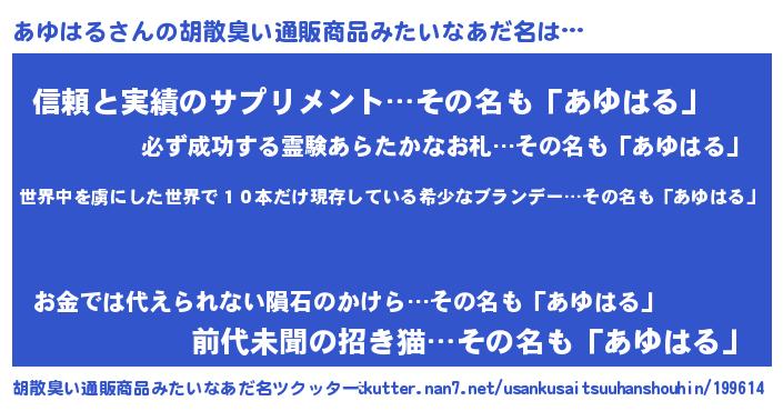 | ヒーロー風カッコイイあだ名 | 『仮面アユダー』『暗黒騎士アユ』 |