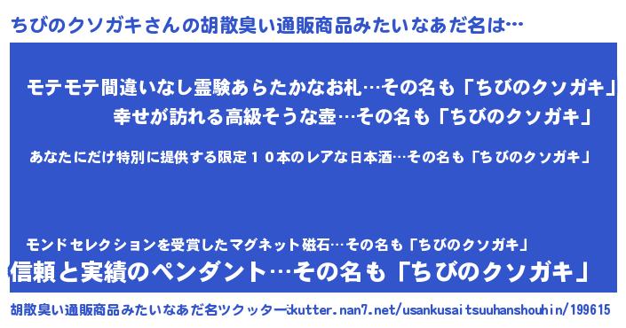 | 意味不明あだ名 | 『住所不定無職ちびのクソガキ(59歳)』 |