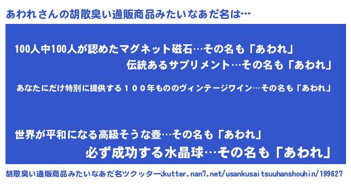 | 欧米人風あだ名 | 『ダレノガレあわれ』『ダニエルあわれ』 |