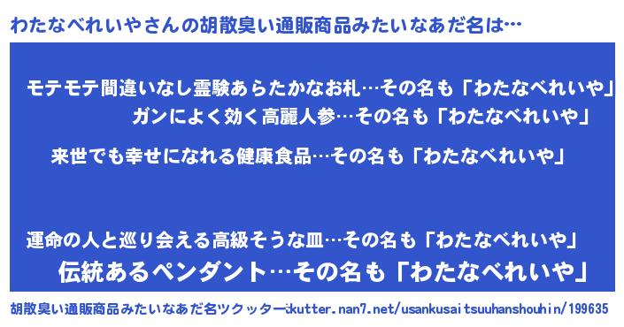 | 意味不明あだ名 | 『永久保存わたなべれいや』 |