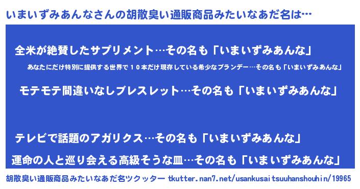 | 男性向けラノベタイトル風あだ名 | 『転生したらいまいずみあんなだった件』 |