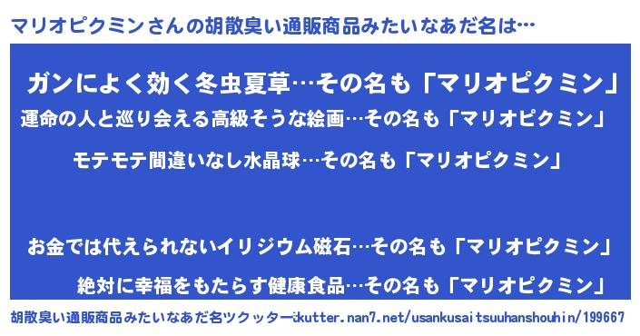 | 男性向けラノベタイトル風あだ名 | 『冴えないマリオピクミンの育てかた』 |