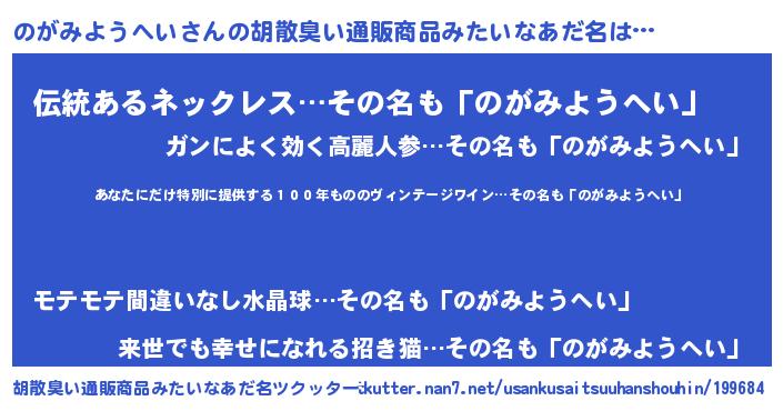 | ヘコむあだ名 | 『のがお』『のがみようへい(爆)』 |