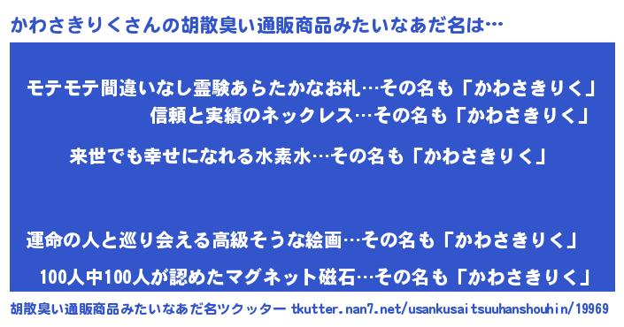 | 意味不明あだ名 | 『永久保存かわさきりく』 |