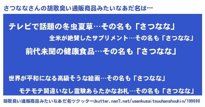 | 意味不明あだ名 | 『永久保存さつなな』『自称さつなな』 |