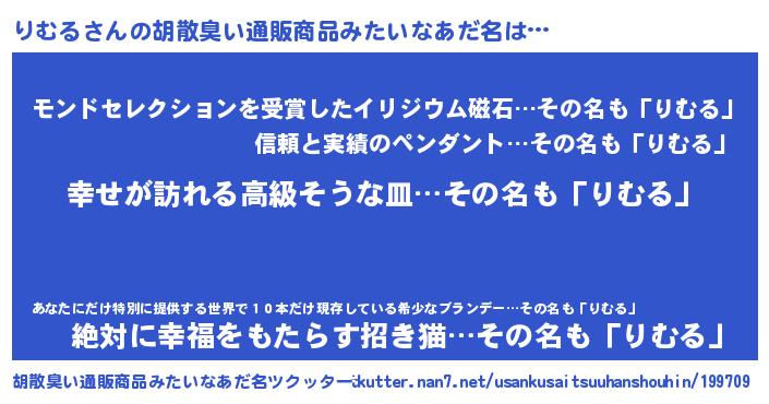 | 意味不明あだ名 | 『りむるフォーエバー』『永久保存りむる』 |