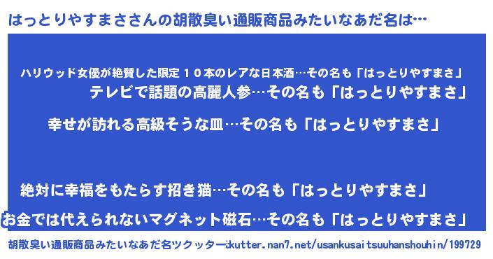 | ヒーロー風カッコイイあだ名 | 『ウルトラはっとりやすまさマン』 |