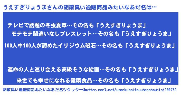| ヘコむあだ名 | 『うえすぎりょうま(爆)』『うえっふぃ~』 |