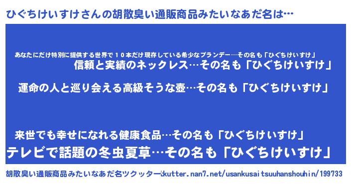 | 意味不明あだ名 | 『ひぐちけいすけフォーエバー』 |