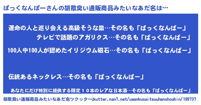 | 欧米人風あだ名 | 『ダニエルばっくなんばー』 |