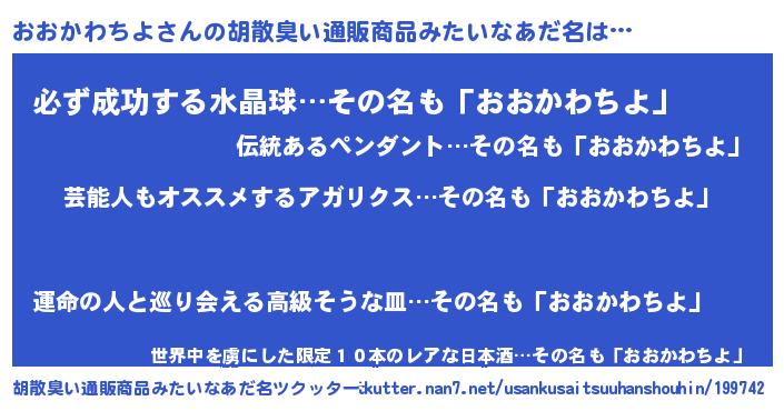 | 意味不明あだ名 | 『自称おおかわちよ』 |