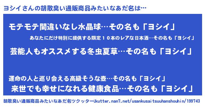 | ヘコむあだ名 | 『ヨシっふぃ~』『ヨシイ(笑)』 |