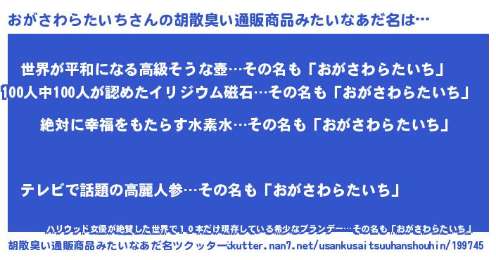 | ヘコむあだ名 | 『おがさわらたいち(震え声)』『なまこ酢』 |
