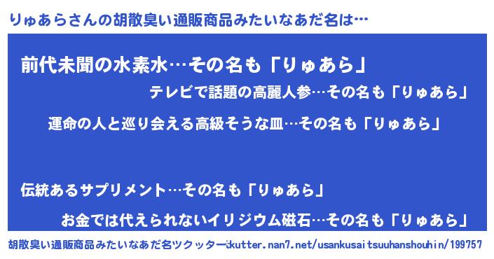 ヘコむあだ名 | 『レバニラ』『りゅあら(笑)』 |