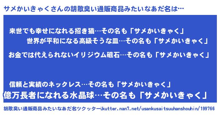| 欧米人風あだ名 | 『トリンドルサメかいきゃく』 |