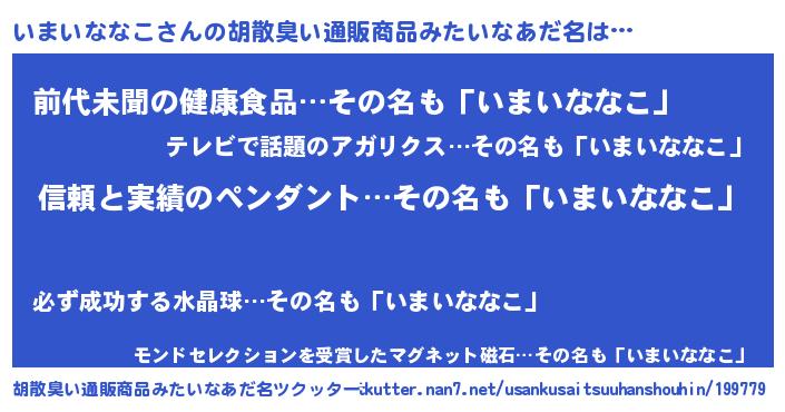 | ヘコむあだ名 | 『いまっちょ』『いまいななこ(震え声)』 |