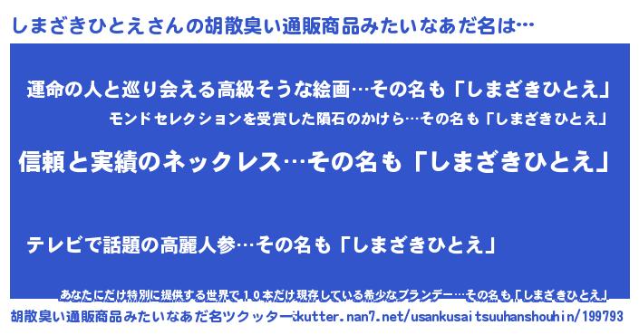 | 意味不明あだ名 | 『とにかく怪しいしまざきひとえ』 |