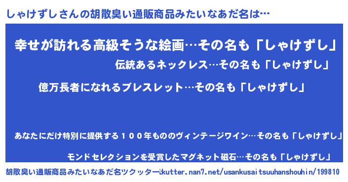 | 欧米人風あだ名 | 『アンジェラ・しゃけずし』 |
