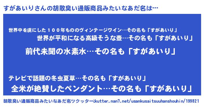 | 男性向けラノベタイトル風あだ名 | 『うちのすがあいりが世界を掌握している!』 |