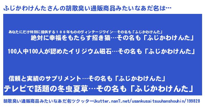 | ヘコむあだ名 | 『ふじかわけんた(爆)』『ふじお』 |