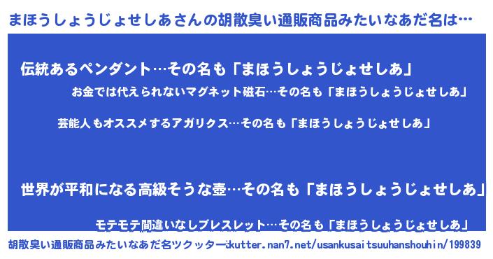| 意味不明あだ名 | 『自称まほうしょうじょせしあ』 |