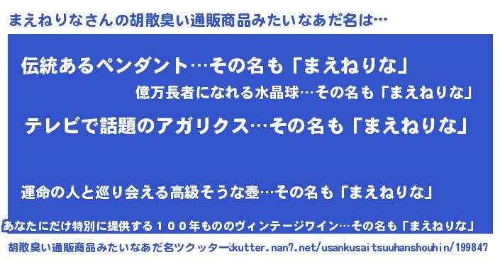 | 意味不明あだ名 | 『自称まえねりな』『ニラ科まえねりな属』 |