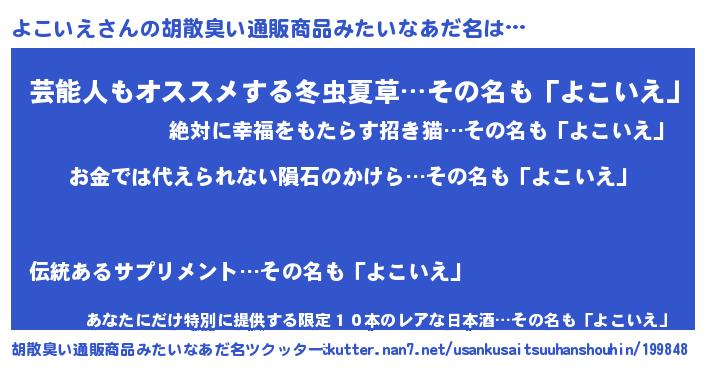 | ヒーロー風カッコイイあだ名 | 『愛の使者よこいえ』『究極戦士ヨコイエ』 |