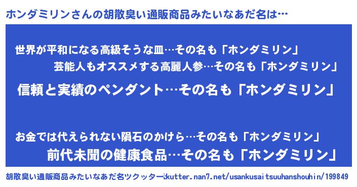 | 意味不明あだ名 | 『とにかく怪しいホンダミリン』 |