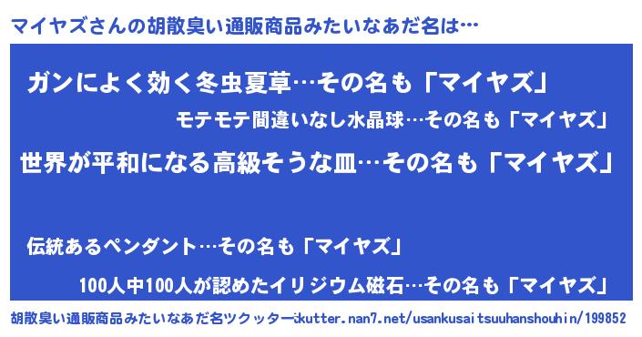 | 恥ずかしいあだ名 | 『マイっちょ』『マイヤズデラックス』 |