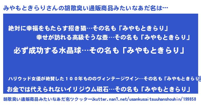 | ヘコむあだ名 | 『みやにゅー』『みやもときらり(小並感)』 |