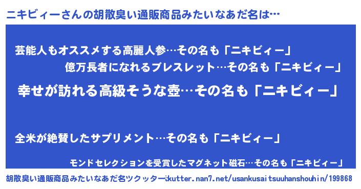 | 欧米人風あだ名 | 『ニキビィークリステル』 |