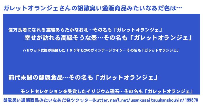| 意味不明あだ名 | 『住所不定無職ガレットオランジェ(9歳)』 |