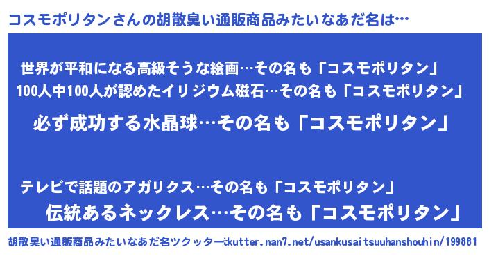 | 男性向けラノベタイトル風あだ名 | 『コスモポリタンの憂鬱』 |