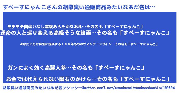 | 意味不明あだ名 | 『住所不定無職すぺーすにゃんこ(13歳)』 |