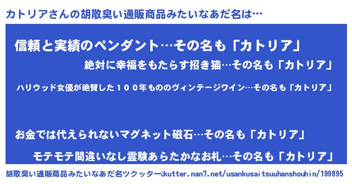 | 男性向けラノベタイトル風あだ名 | 『カトリアスレイヤー』 |