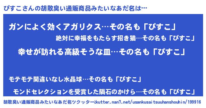 | 意味不明あだ名 | 『ぴすこフォーエバー』『自称ぴすこ』 |
