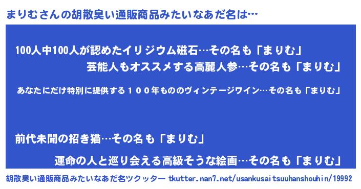 | 意味不明あだ名 | 『住所不定無職まりむ(8歳)』『自称まりむ』 |