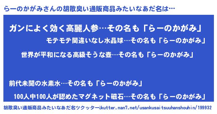 | 肩書あだ名 | 『らーのかがみ大統領』 |