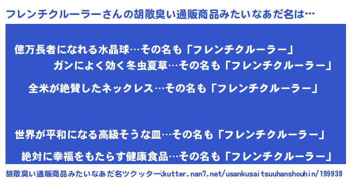 | 意味不明あだ名 | 『とにかく怪しいフレンチクルーラー』 |