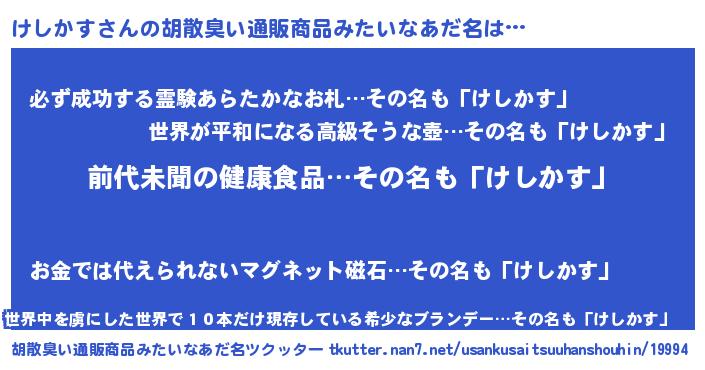 | ヘコむあだ名 | 『けしかす(爆)』『けしもー』 |