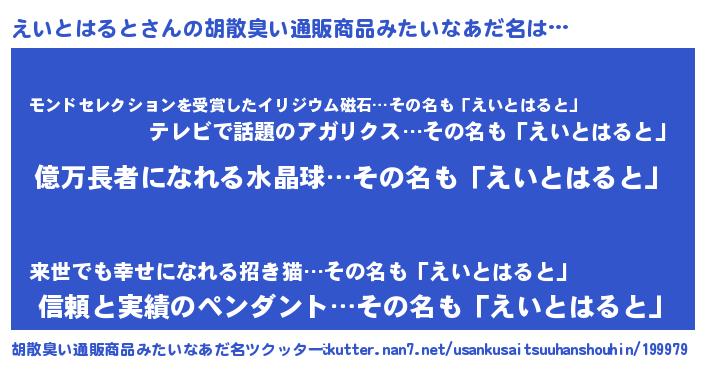えいとはるとさんの胡散臭い通販商品みたいなあだ名をツクッター!