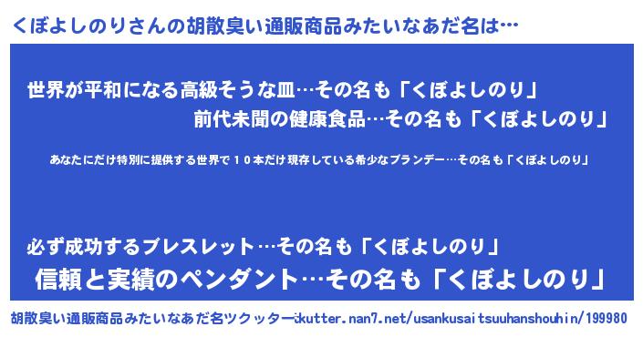 | 意味不明あだ名 | 『住所不定無職くぼよしのり(86歳)』 |