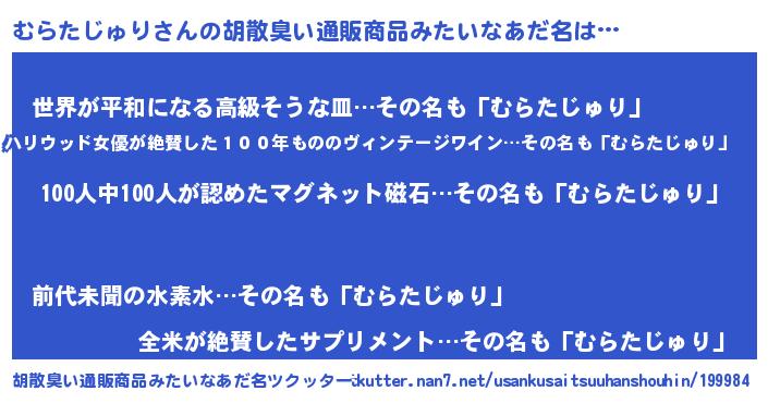 | 意味不明あだ名 | 『眠気覚ましガムむらたじゅり味』 |