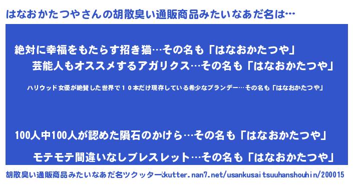 | 意味不明あだ名 | 『住所不定無職はなおかたつや(84歳)』 |