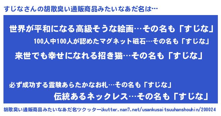 | ヘコむあだ名 | 『すじな(小並感)』『酢こんぶ』 |