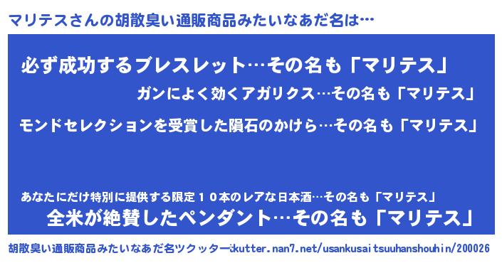 | ヘコむあだ名 | 『マリっふぃ~』『マリお』 |