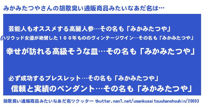 | 意味不明あだ名 | 『みかみたつやフォーエバー』 |
